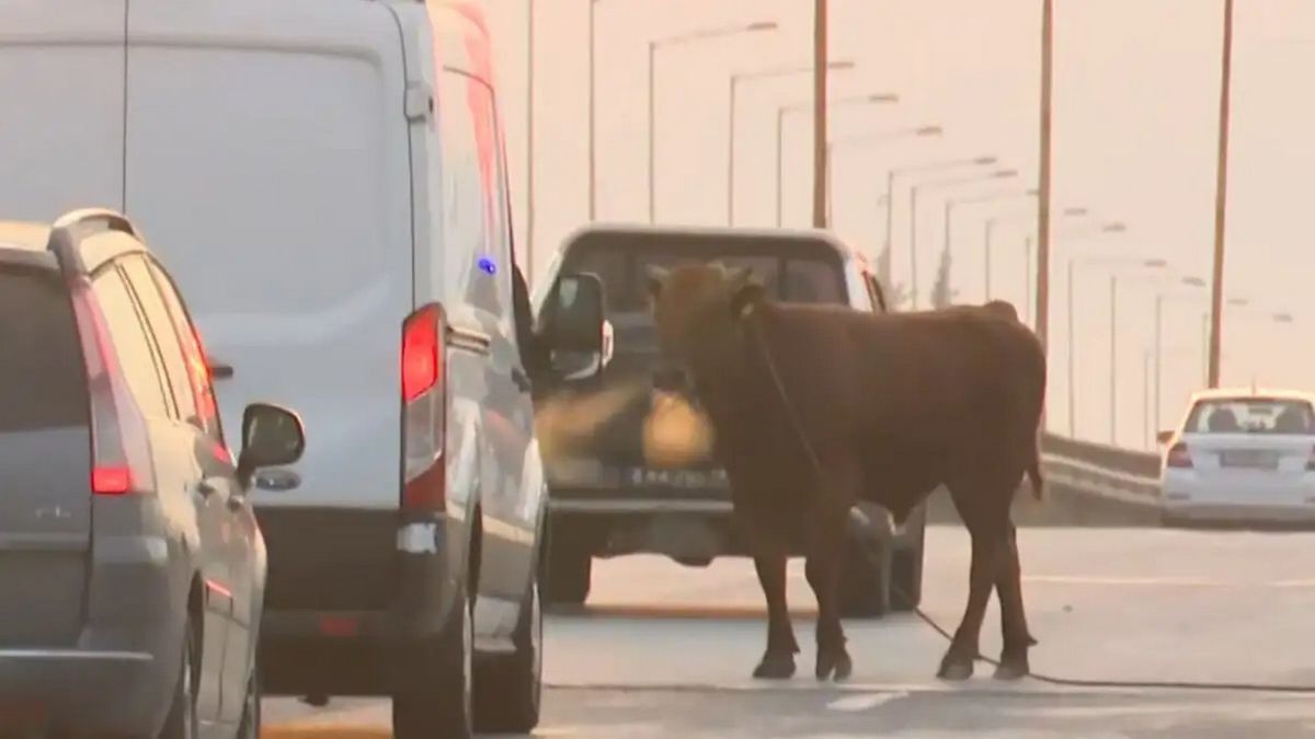 Σύμφωνα με όσα μετέδωσε η ΕΡΤ, ο νεαρός ταύρος ξέφυγε από το Καλοχώρι και έφτασε στην Εθνική Οδό, όπου τρομαγμένος σουλάτσαρε ανάμεσα στα αυτοκίνητα στην εθνική οδό της Θεσσαλονίκης για περίπου 45 λεπτά προκαλώντας πανικό στους οδηγούς και κυκλοφοριακό κομφούζιο.