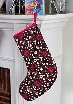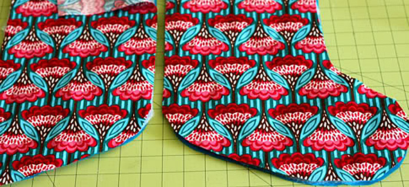 Καταρχήν εκτυπώστε σε μεγάλο χαρτί την πατέντα, πάνω στην οποία θα βασιστείτε για το σχέδιο της κάλτσας («κατεβάστε» την από εδώ). Υπολογίστε ότι η κάθε κάλτσα θα έχει ύψος 25 εκ. Πάνω στην πατέντα θα βασιστείτε για να κόψετε το ύφασμα από το οποίο θα δημιουργήσετε την κάλτσα. Το ύφασμα που θα χρησιμοποιήσετε θα χρησιμοποιήσετε μπορεί να έχει ό,τι χρώμα και σχέδιο επιθυμείτε (μπορεί ακόμα να είναι από τσόχα). Αν θέλετε, η κάθε κάλτσα μπορεί να αποτελείται από τρία «φύλλα» υφάσματος, δηλαδή το εξωτερικό, μία επένδυση από πολυστέρα και ένα άλλο φύλλο υφάσματος στο εσωτερικό ως φόδρα. Εννοείται ότι όλα αυτά πρέπει να τα υπολογίσετε επί δύο, για τις δύο πλευρές της κάλτσας.
