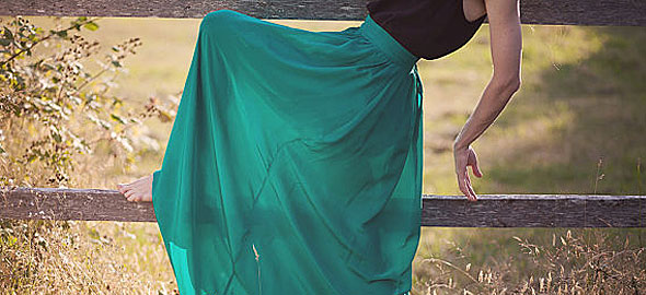 Σμαραγδί φούστα από 100% μετάξι, με λάστιχο στη μέση.