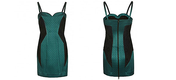 Το σμαραγδί στην μπαρόκ εκδοχή του. Bodycon αλλά ελαστικό φόρεμα με αρχιτεκτονική αισθητική, σε 50s γραμμή, με υπέροχο κόψιμο καρδιάς στο μπούστο.