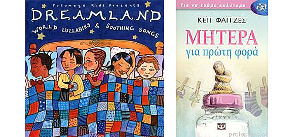 Ένα εξαιρετικό βιβλίο για νέες μαμάδες είναι το «Μητέρα για Πρώτη Φορά» της Κέιτ Φάιτζες, στο οποίο η συγγραφέας καλεί τις νέες μανούλες να ξεχάσουν για λίγο το μωρό τους και να σκεφτούν τον εαυτό τους, τις σκέψεις και τις ανάγκες τους -αγοράστε το online από εδώ (τιμή: 14,21 ευρώ). Όσο για μουσική, η συλλογή «Dreamland: World Lullabies & Soothing Songs» είναι πραγματικά χαλαρωτική και ευχάριστη τόσο για την έγκυο όσο και για το μωρό. Αν δεν την βρείτε στα μεγάλα δισκοπωλείο, αγοράστε online από το Amazon.com.