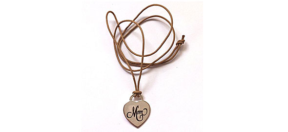 Ασημένια κα επιπλατινωμένη κρεμαστή καρδιά με ένα όμορφο χάραγμα «Mom» στο κέντρο της, η οποία συνοδεύεται από καφέ κορδονάκι. Αποκλείεται να μην ενθουσιάσει τις μέλλουσες μανούλες που αγαπούν το στιλ και τα ιδιαίτερα αξεσουάρ.