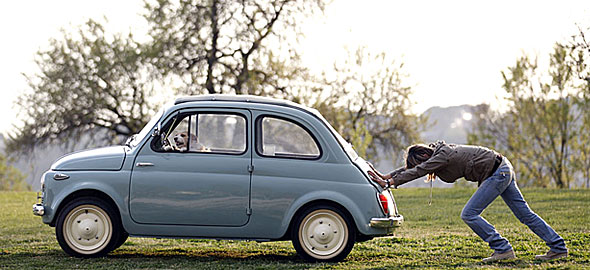 «Εδώ και καιρό έψαχνα τρόπο να απεικονίσω την υπερβολική αύξηση του κόστους της βενζίνης στην Ιταλία, όμως αναζητούσα κάτι διαφορετικό από ένα βενζινάδικο με την λίστα των τιμών. Μετά από πολύ καιρό, καθώς ταξίδευα με το scooter μου συνάντησα αυτή τη γυναίκα που προσπαθούσε να σπρώξει το κλασικό Fiat 500 της στα περίχωρα της Ρώμης».