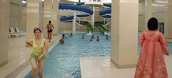 «Αυτή η φωτογραφία ήταν μέρος ενός δεκαήμερου δημοσιογραφικού τουρ στη Βόρεια Κορέα για την επέτειο των 100 χρόνων από την γέννηση του πρώην ηγέτη Kim Il-sung. Πρόκειται για τις εγκαταστάσεις ενός πανεπιστημίου, όπου με εξέπληξαν τα παλιομοδίτικα μαγιό των γυναικών».