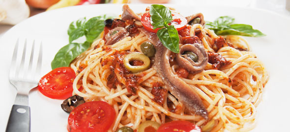 Τι θα κάνετε: Βάζετε λίγο ελαιόλαδο στο τηγάνι και σοτάρετε τις αντζούγιες σε χαμηλή φωτιά. Προσθέτετε τις ελιές, το σκόρδο, την κάππαρη και τη ντομάτα. Αφήστε το να πάρει μία βράση. Προσθέτετε τα βρασμένα μακαρόνια. Γαρνίρετε με λίγο μαϊντανό για το χρώμα.