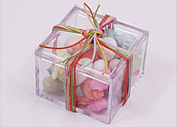 Άλλη μία πανεύκολη και πρωτότυπη ιδέα είναι να γεμίσετε γυάλινους δοκιμαστικούς σωλήνες με καπάκι από φελλό (θα βρείτε στο εμπόριο σε πολύ χαμηλές τιμές) με κουφέτα, και να τους στολίσετε με κορδελίτσες.