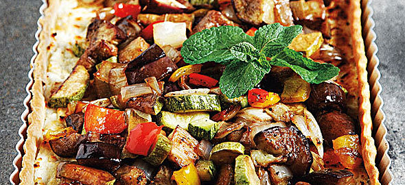 Τάρτα με ζύμη τυριού και ψητά λαχανικά