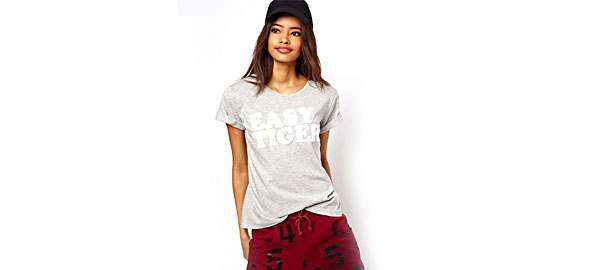 T-Shirt με στάμπα «Easy Tiger» από λεπτό, απαλό ζέρσεϊ, σε ίσια γραμμή. Στο Asos θα βρείτε μεγάλη ποικιλία σε t-shirts για τη γυμναστική με «έξυπνες» στάμπες, καθώς και πολλά ακόμα είδη αθλητικής ένδυσης και υπόδησης.
