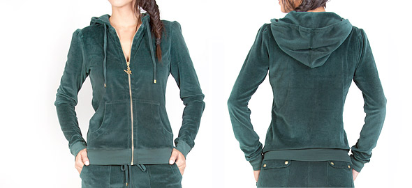 Βελουτέ σετ για όσες θέλουν να γυμνάζονται με κομψότητα, με ελαφρώς «φουσκωμένους» ώμους, κουκούλα και όμορφα χρυσαφί διακοσμητικά στο φερμουάρ και στα κορδόνια. Διατίθεται ακόμα σε λευκό, καφέ και φούξια.