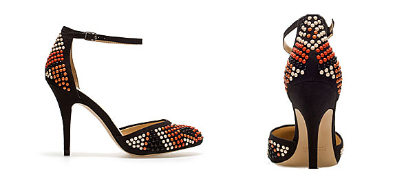 Η νέα συλλογή υποδημάτων των Zara μας ενθουσίασε με την ανανεωμένη της διάθεση και το boho-chic στιλ. Ξεχωρίσαμε τις γόβες της φωτογραφίας με τις πολύχρωμες πέτρες. Συνδυάστε τις με εμπριμέ boho φόρεμα ή με τζιν σε σχέδιο καμπάνα. Ύψος τακουνιού: 8 εκ.