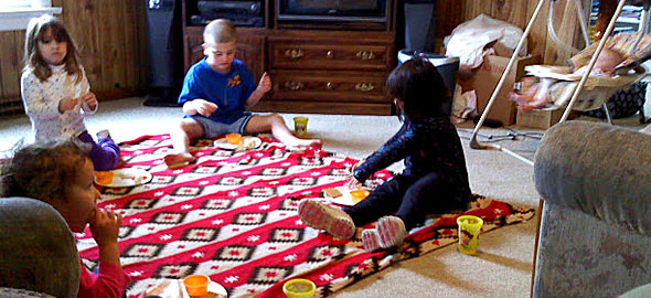 Αντί να ετοιμάσετε το βραδινό φαγητό τους και να τους το σερβίρετε στην κουζίνα, όπως κάνετε κάθε βράδυ, προτείνετέ τους να κάνετε όλοι μαζί πικ-νικ στο σαλόνι. Ετοιμάστε νόστιμα και υγιεινά σνακς και ζητήστε από τα παιδιά να σας βοηθήσουν για να τα στοιβάξετε σε ένα μεγάλο καλάθι. Βάλτε ακόμα μέσα τα πλαστικά πιατάκια και ποτηράκια που σας έχουν περισσέψει από τα πάρτι, για να γίνει το πικ-νικ σας ακόμα πιο ρεαλιστικό. Στρώστε και μία κουβέρτα στο πάτωμα, αν έχετε τζάκι ανάψτε το -αν ανάψτε μερικά κεριά- και... παρακολουθήστε τα σάντουιτς να εξαφανίζονται.