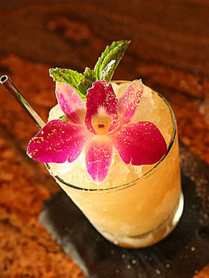 Γεμίστε ένα ποτήρι με θρυμματισμένο πάγο, ανακατέψτε το και προσθέστε λίγο ακόμα πάγο. Αναμείξτε τα ποτά στο σέικερ και ρίξτε τα στο ποτήρι. Διακοσμήστε με την ορχιδέα και τη μέντα. Πασπαλίστε με λίγη άχνη ζάχαρη.