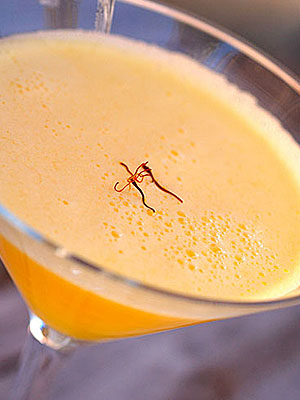 Αναμείξτε όλα τα υλικά σε ένα σέικερ για κοκτέιλ. Βάλτε πάγο και «χτυπήστε» δυνατά. Γεμίστε ένα παγωμένο ποτήρι για κοκτέιλ. Διακοσμήστε με λίγες κλωστές από σαφράν.
